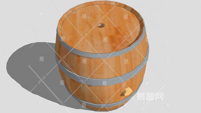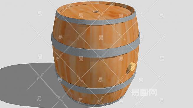 站立橡木容器桶SU模型下载_sketchup草图大师SKP模型