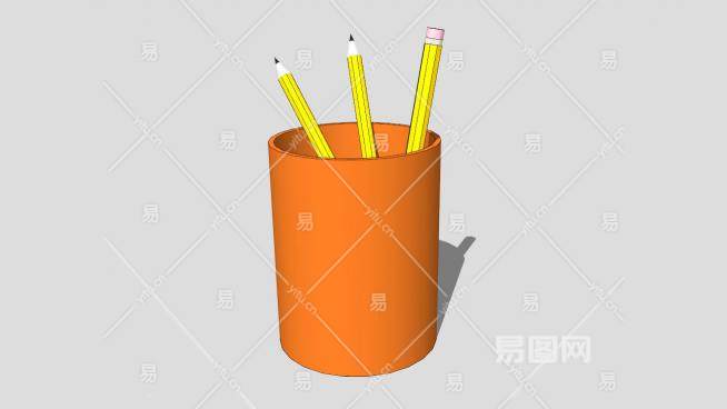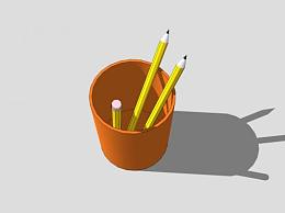 橘色塑料圆笔筒SU模型下载_sketchup草图大师SKP模型