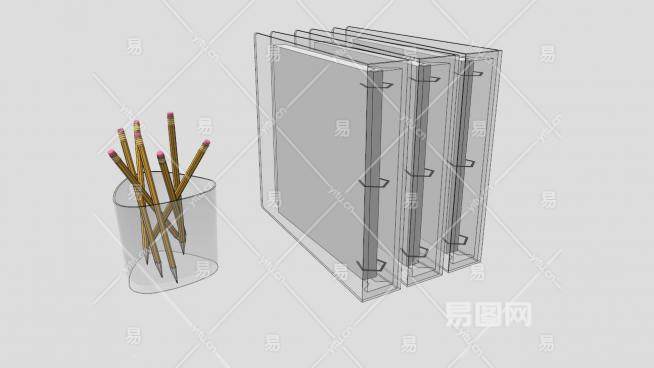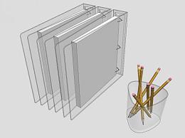 透明塑料书立和笔筒SU模型下载_sketchup草图大师SKP模型