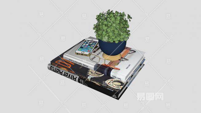 书籍和绿色小盆栽SU模型下载_sketchup草图大师SKP模型