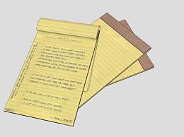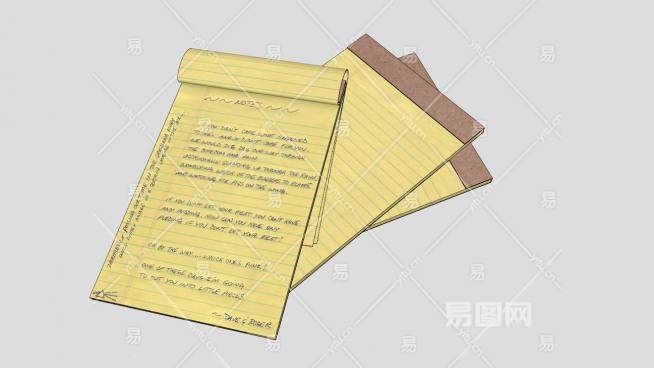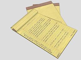 黄色内衬便条纸记事本SU模型下载_sketchup草图大师SKP模型