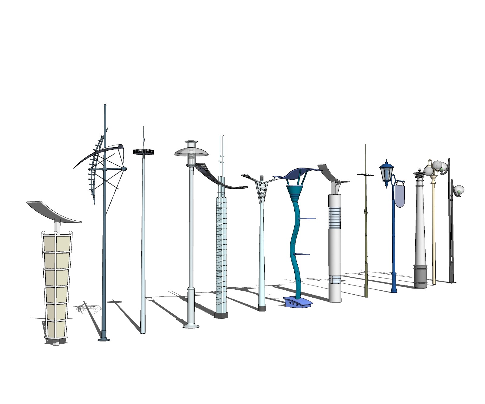 现代户外景观灯组合草图大师模型,户外灯skp文件下载