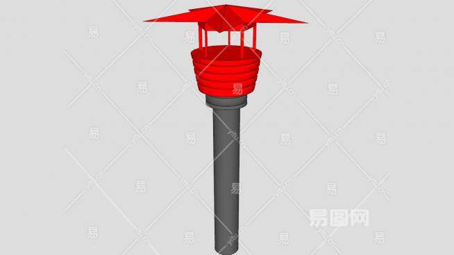 党建红色草坪灯SU模型下载_sketchup草图大师SKP模型