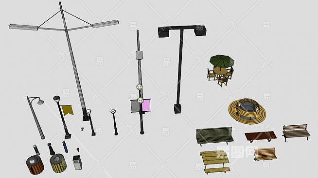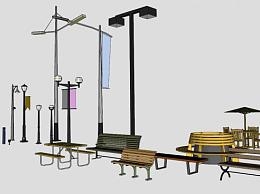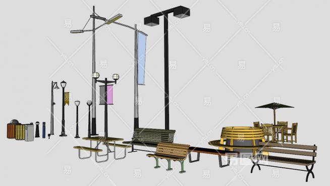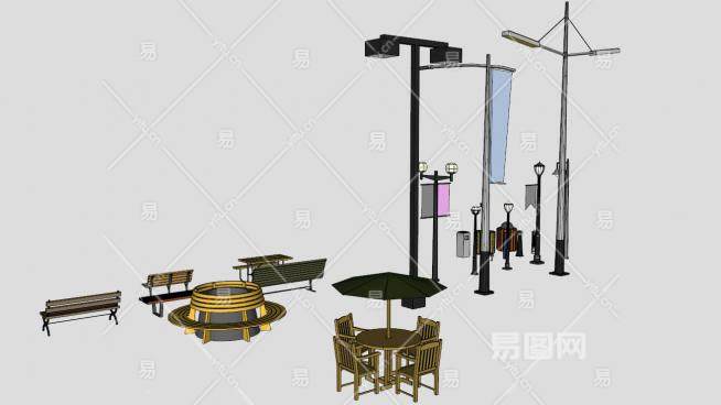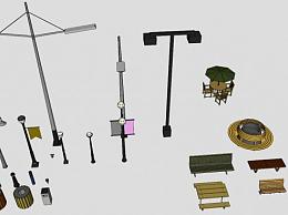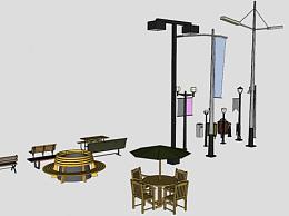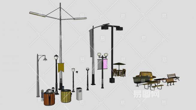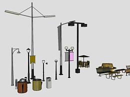 灯座椅垃圾桶公共SU模型下载_sketchup草图大师SKP模型