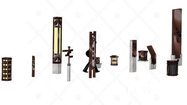 古代灯具及公共外设施设计SU模型下载_sketchup草图大师SKP模型