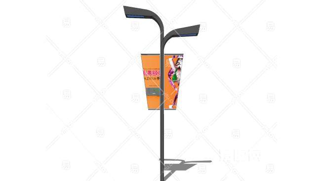 广告招牌双头路灯SU模型下载_sketchup草图大师SKP模型
