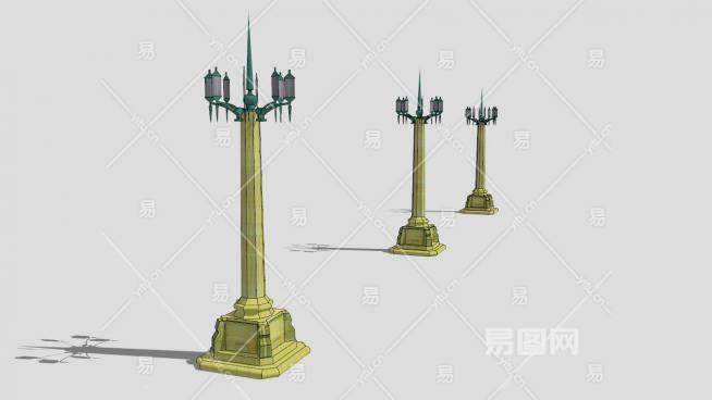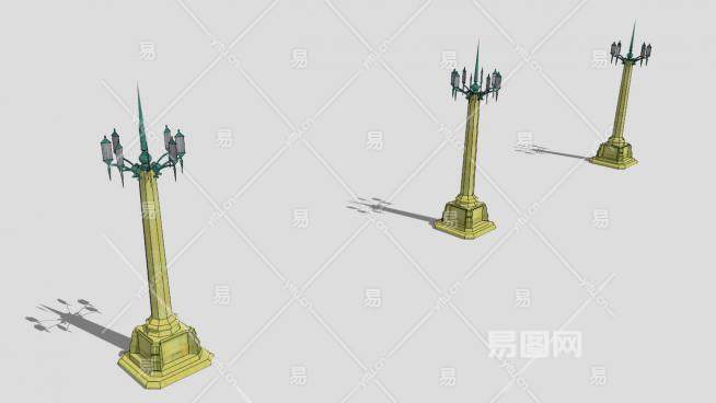 简欧广场灯双臂灯SU模型下载_sketchup草图大师SKP模型