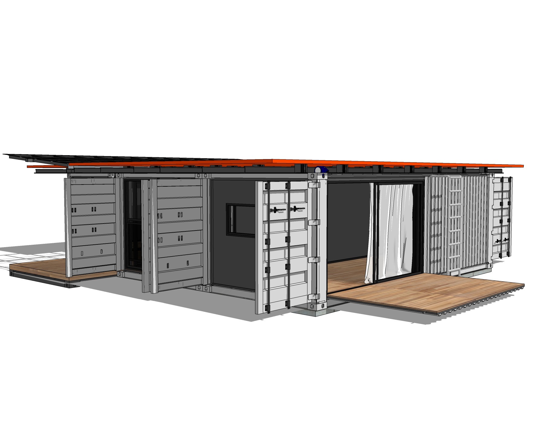 现代集装箱改造房草图大师模型,集装箱住宅sketchup模型下载