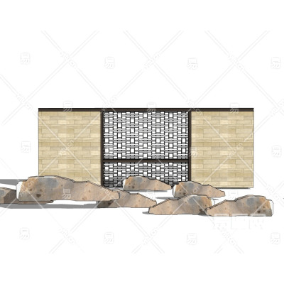 中式景观墙su模型