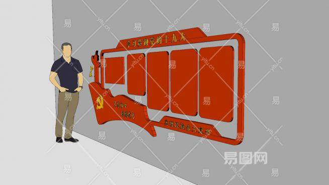 党建文化墙SU模型下载_sketchup草图大师SKP模型