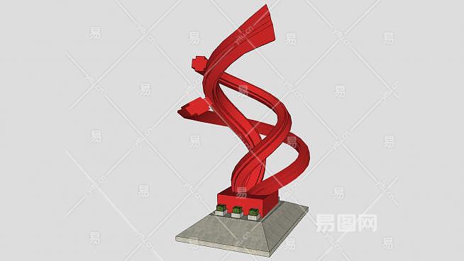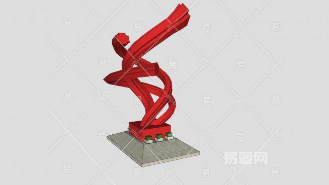 红色景观雕塑小品SU模型下载_sketchup草图大师SKP模型
