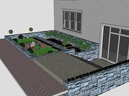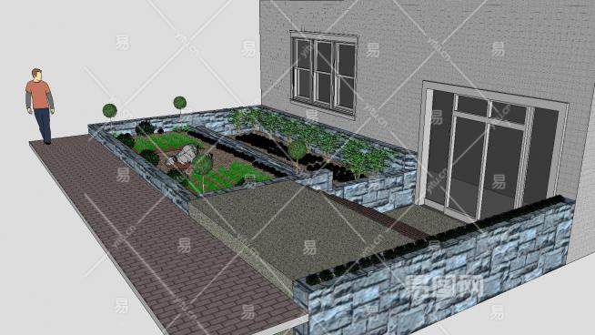 住宅建筑物前院过道花圃设计SU模型下载_sketchup草图大师SKP模型