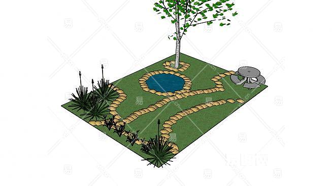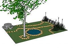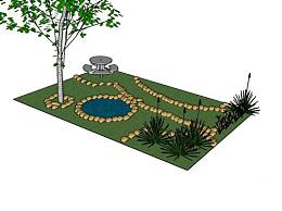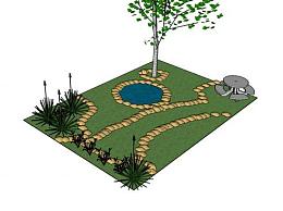 户外景观池塘砖石走道SU模型下载_sketchup草图大师SKP模型