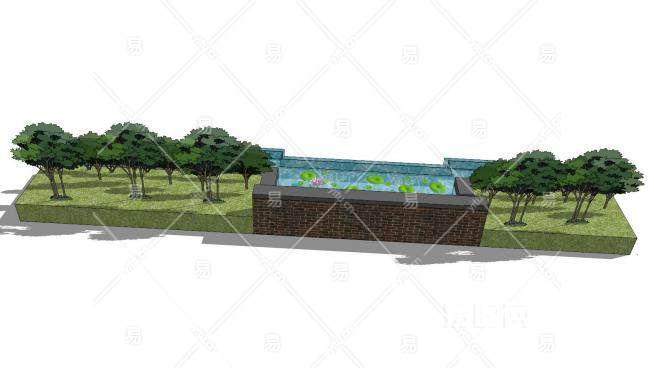 荷花水景SU模型下载_sketchup草图大师SKP模型