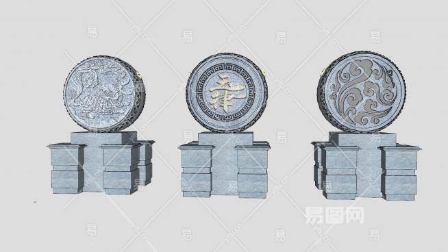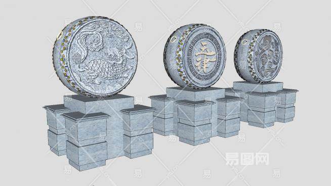 抱鼓石石鼓SU模型下载_sketchup草图大师SKP模型