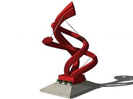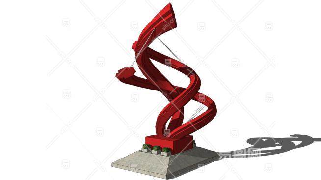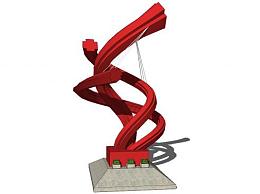 红色雕塑抽象结构SU模型下载_sketchup草图大师SKP模型