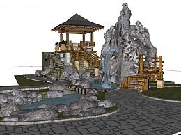 假山凉亭SU模型下载_sketchup草图大师SKP模型