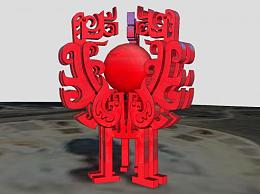 九凤朝阳雕塑建筑SU模型下载_sketchup草图大师SKP模型