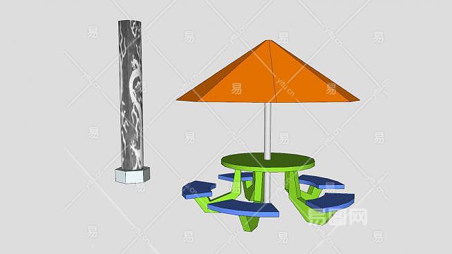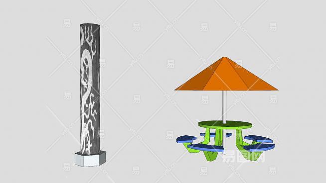 盘龙柱子和户外休息遮阳伞座椅SU模型下载_sketchup草图大师SKP模型