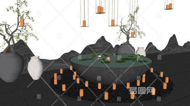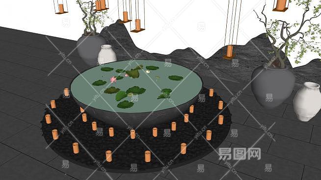 园林景观水钵水缸su模型下载_sketchup草图大师SKP模型