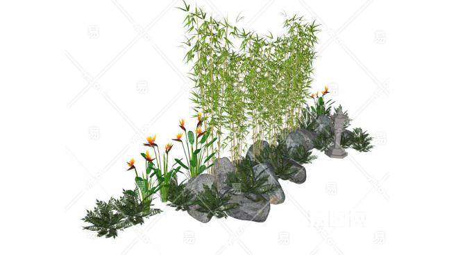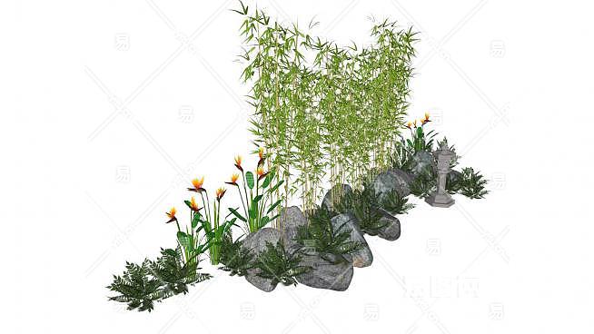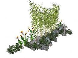池塘造景SU模型下载_sketchup草图大师SKP模型