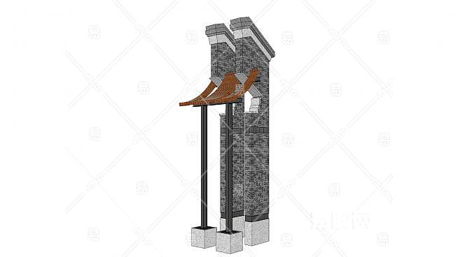 新中式马头墙景观小品SU模型下载_sketchup草图大师SKP模型