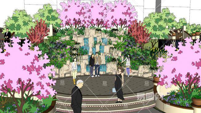 庭院跌水的su模型下载_sketchup草图大师SKP模型