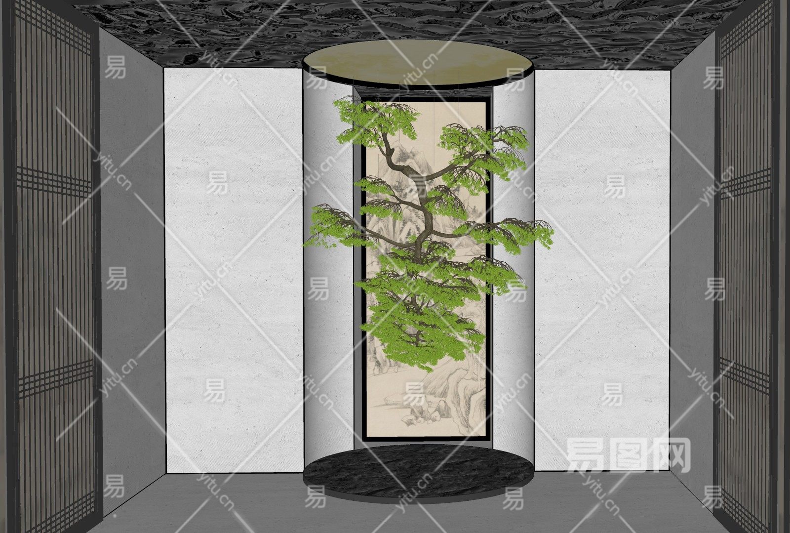 现代新中式风格室内植物景观小品su模型