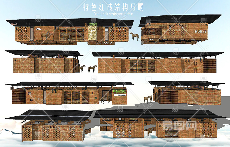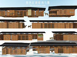 现代红砖马棚 砖结构马厩 家畜房屋 萌宠乐园建筑