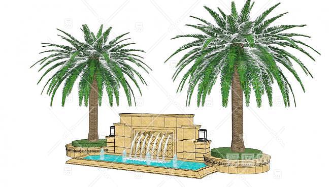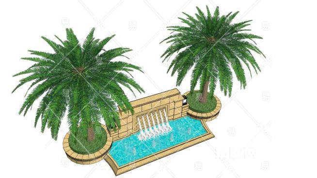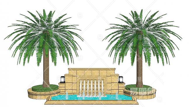 喷泉水设备景墙SU模型下载_sketchup草图大师SKP模型