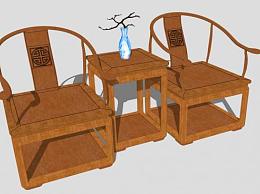 新中式单人椅子一对sketchup模型下载_sketchup草图大师SKP模型
