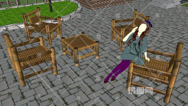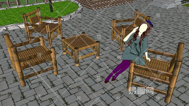 竹子椅子su模型下载_sketchup草图大师SKP模型