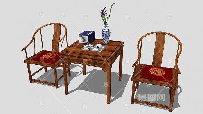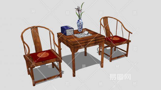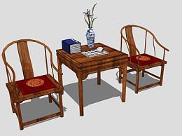 中式仿古木质单人扶手椅一对SU模型下载_sketchup草图大师SKP模型
