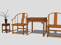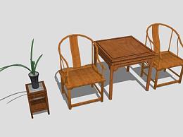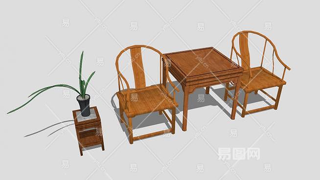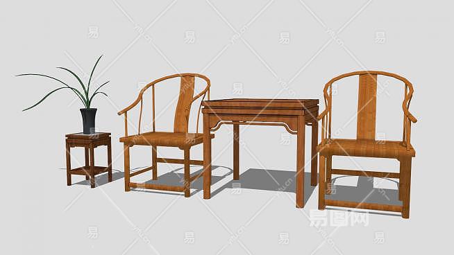 新中式木质单人扶手椅一对sketchup模型下载_sketchup草图大师SKP模型