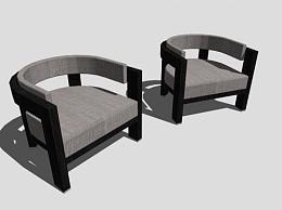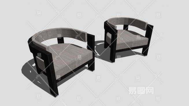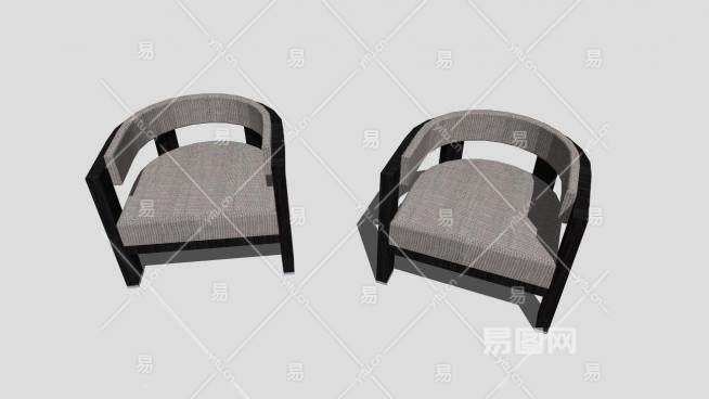 中式现代简约单人扶手椅SU模型下载_sketchup草图大师SKP模型