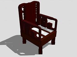 中式仿古实木单人扶手椅SU模型下载_sketchup草图大师SKP模型