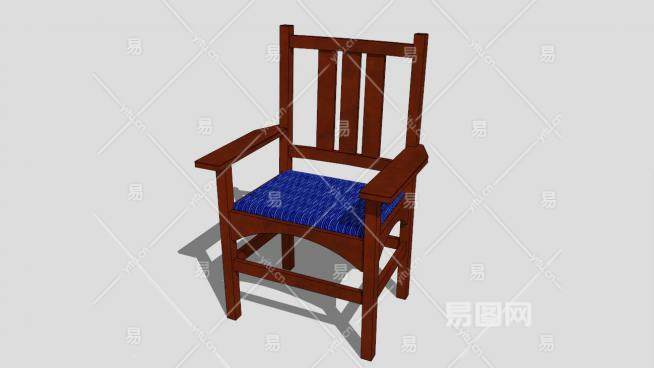新中式古典木质单人扶手椅SU模型下载_sketchup草图大师SKP模型
