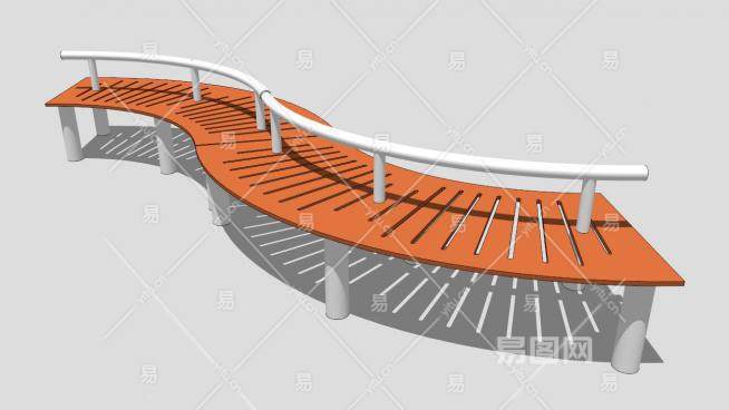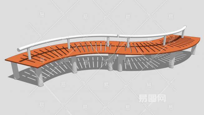 公园弧线木质长椅SU模型下载_sketchup草图大师SKP模型