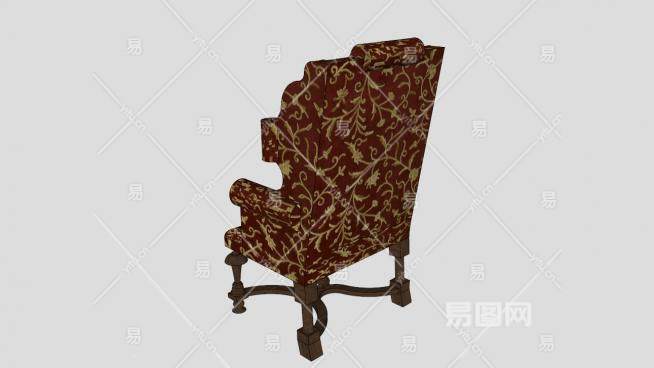 豪华扶手椅翼背椅SU模型下载_sketchup草图大师SKP模型