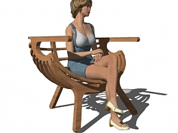 现代创意实木单椅su模型