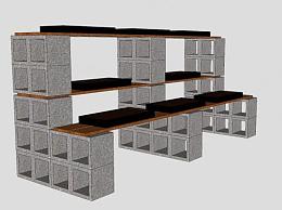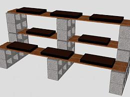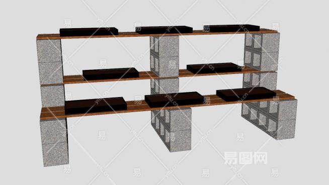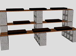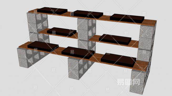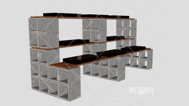 砖石镂空木制植物架SU模型下载_sketchup草图大师SKP模型