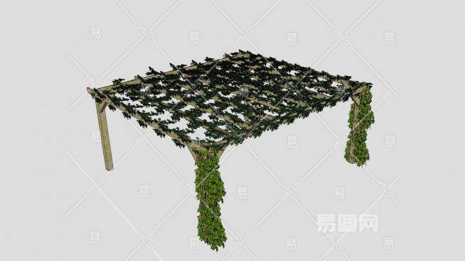 花架上的爬藤植物庭院景观SU模型下载_sketchup草图大师SKP模型