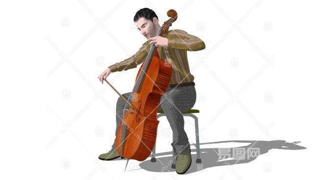 拉大提琴的表演者SU模型下载_sketchup草图大师SKP模型