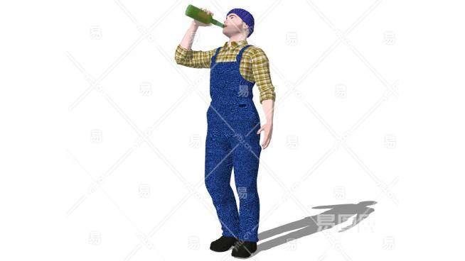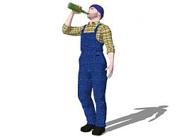 喝啤酒的男人SU模型下载_sketchup草图大师SKP模型