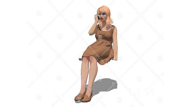 打电话的女人SU模型下载_sketchup草图大师SKP模型