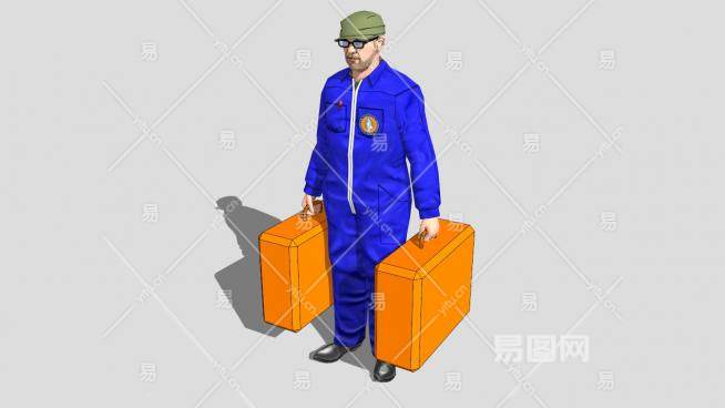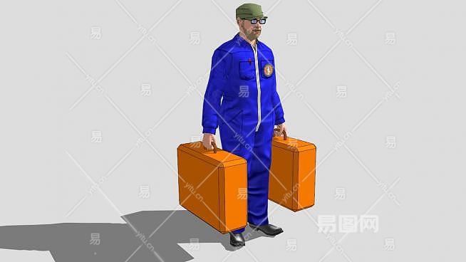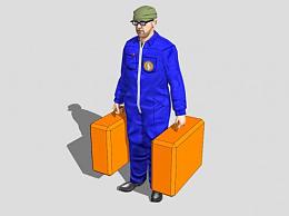 一个提箱的男旅客SU模型下载_sketchup草图大师SKP模型