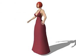 吊带长裙时尚女人SU模型下载_sketchup草图大师SKP模型