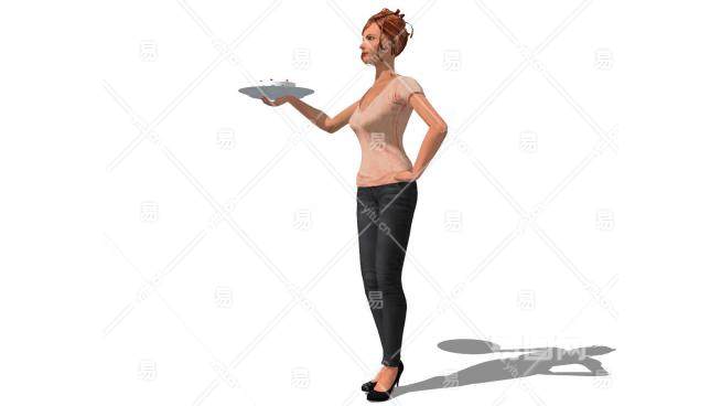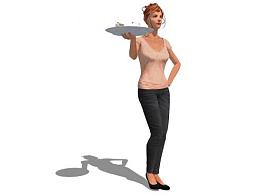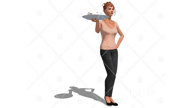 端蛋糕的女士SU模型下载_sketchup草图大师SKP模型