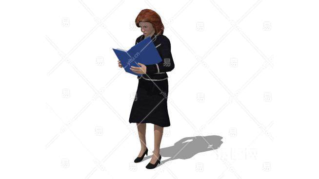 看资料的女教师SU模型下载_sketchup草图大师SKP模型