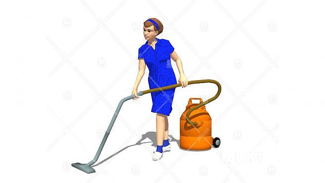 用吸尘器的清洁员SU模型下载_sketchup草图大师SKP模型
